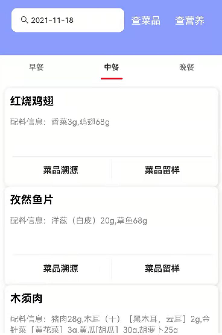 家長、老師、監管人員可實時查詢學校食堂每日菜品信息及營養攝入等情況,還可通過小程序看到中央廚房的食品生產過程,做到公開、透明。